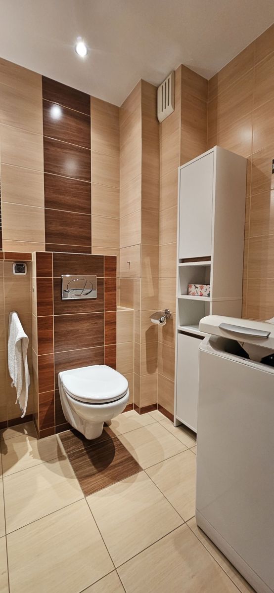 Mieszkanie jest w pełni umeblowane i wyposażone, gotowe do wprowadzenia się od zaraz. Południowa ekspozycja okien gwarantuje mnóstwo naturalnego światła, dzięki czemu wnętrza są słoneczne, jasne i ciche, z widokiem na spokojną przestrzeń pomiędzy budynkami.