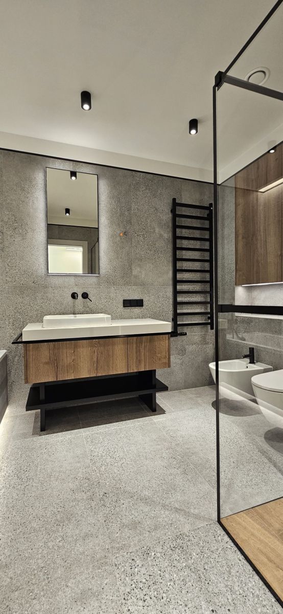 Apartament z niezależnym wejściem został starannie zaprojektowany, aby łączyć funkcjonalność z niepowtarzalnym stylem. Przestrzeń została podzielona na dwa poziomy, tworząc komfortową strefę dzienną i prywatną oazę spokoju.