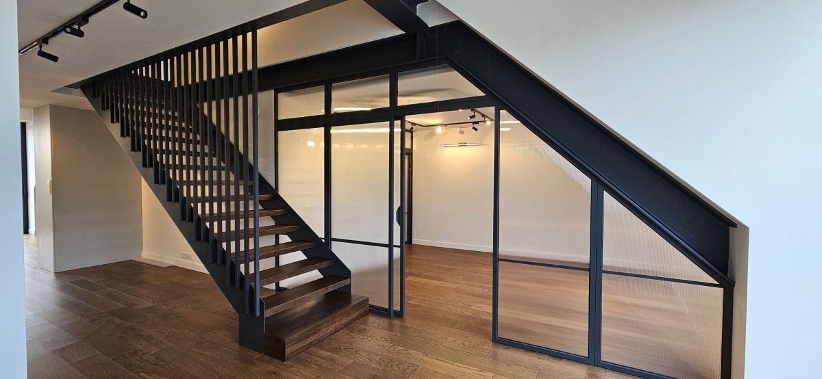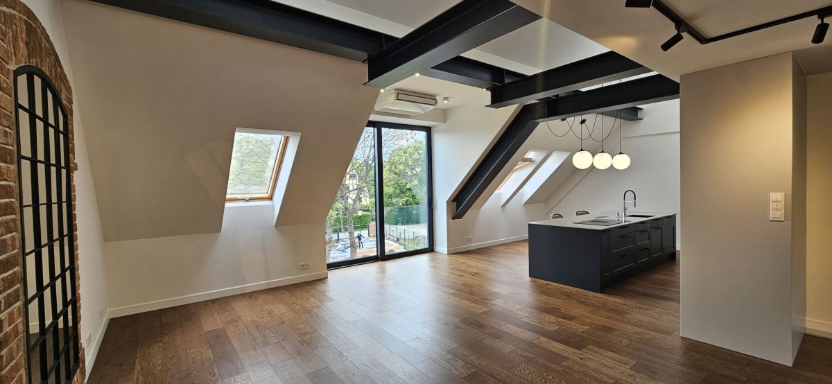 Apartament wyróżnia się nie tylko wysokim standardem wykończenia, ale także naturalnym oświetleniem, które zapewniają zastosowane szklenia i automatyczne rolety zewnętrzne. Wnętrza doświetlają połacie dachowe, a komfort użytkowania podnoszą klimatyzacja, rekuperacja oraz ogrzewanie pompą ciepła.