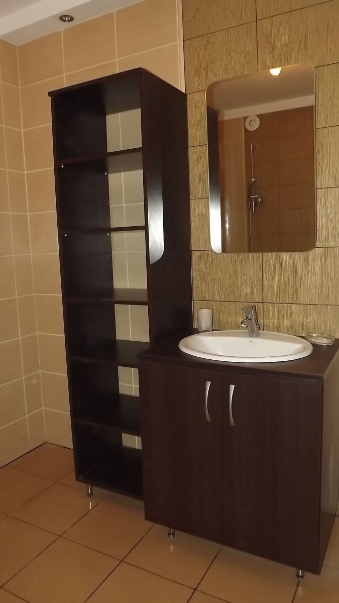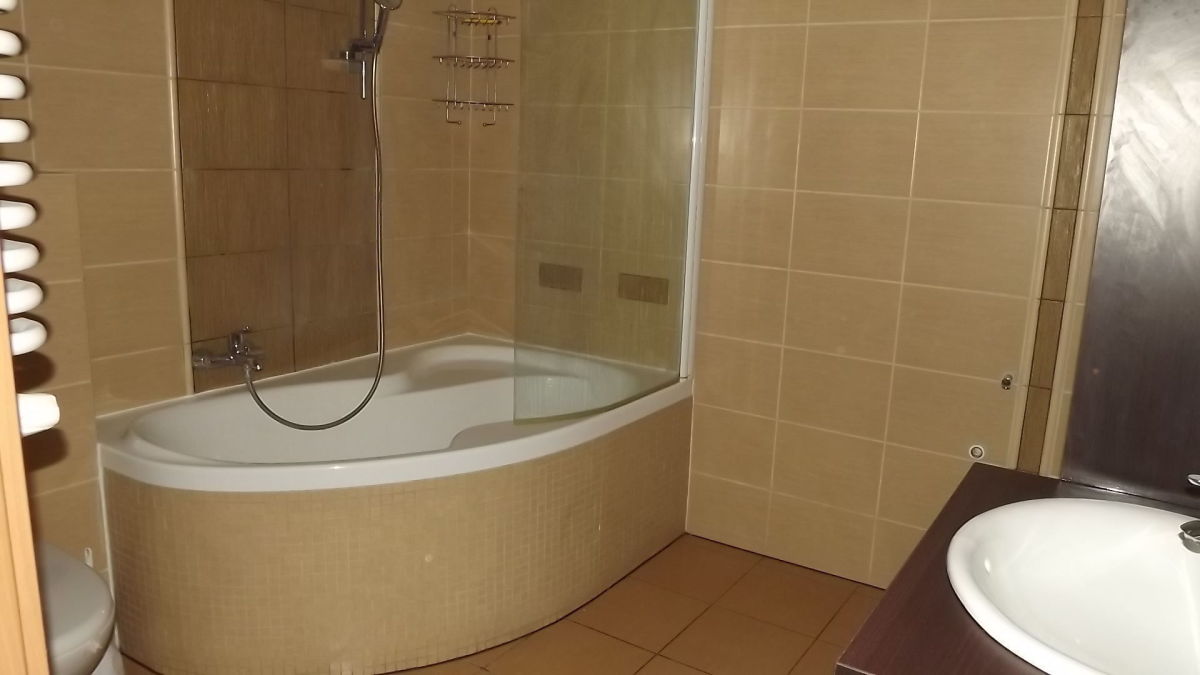 Stan techniczny lokalu jest bardzo dobry. Łazienka wyposażona w narożną wannę, WC oraz pralkę. Kuchnia w formie funkcjonalnego aneksu, podzielonego na dwie części - jedna z płytą elektryczną i blatem do przygotowywania posiłków, druga z pełnym wyposażeniem technicznym: zmywarką, zlewozmywakiem, piekarnikiem, mikrofalówką oraz chłodziarko-zamrażarką.